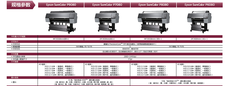 對開幅面:EPSON P6080  (9色)     EPSON P7080  (11色)