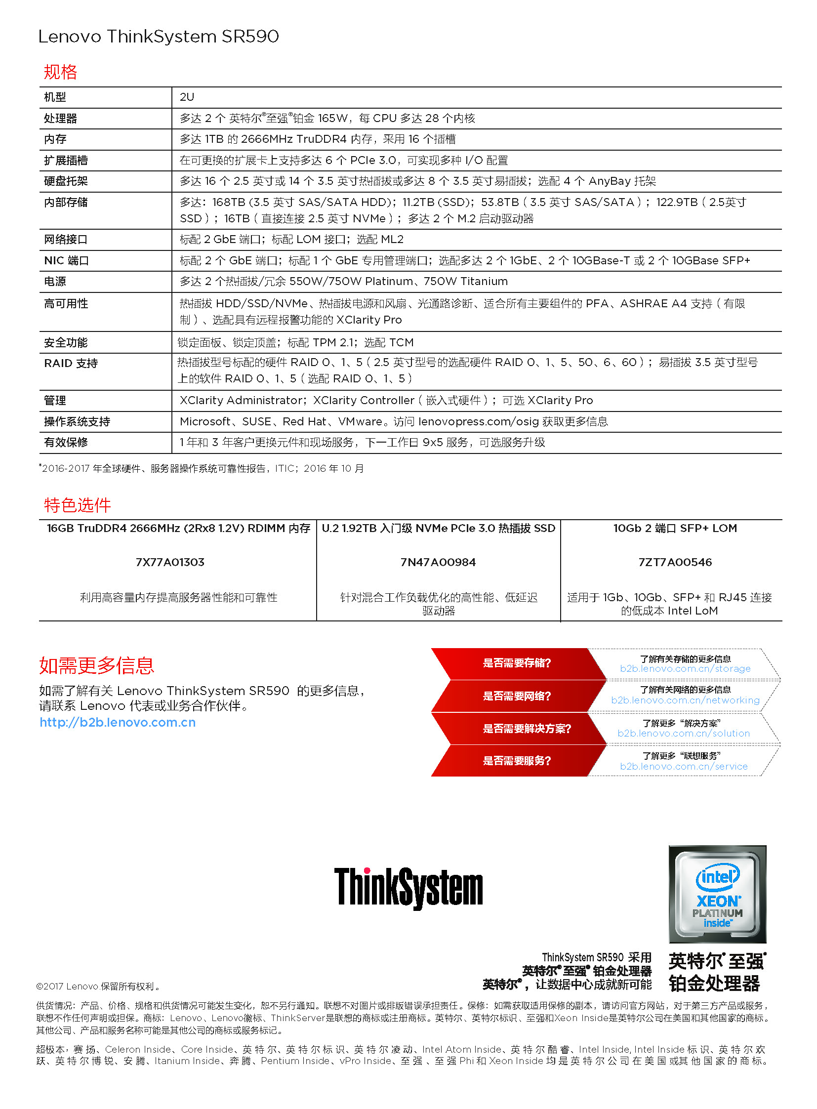 聯想Lenovo SR590服務器 2*4114 10核/2*16G/3*2.4T 10K SAS硬盤
