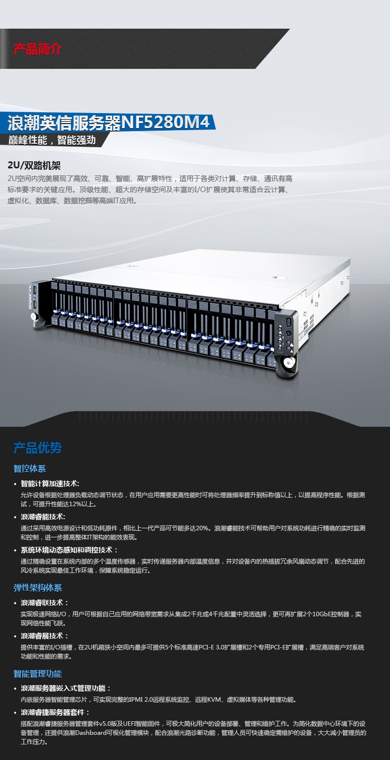 浪潮inspur NF5280M4服務器 浪潮(INSPUR)服務器NF5280M4(E5-2620v4*2/2*32G內存/4*300G硬盤)